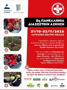Η Εθελοντική Διασωστική Ομάδα Κρίσεων (Ε.Δ.Ο.Κ.) διοργανώνει την 8η Πανελλήνια Διασωστική Άσκηση, σε συνεργασία με τον Δήμο Νίκαιας – Αγ. Ι. Ρέντη – Τμήμα Πολιτικής Προστασίας, υπό την αιγίδα της Περιφέρειας Αττικής και με την υποστήριξη του Ελληνικού Διαδημοτικού Δικτύου Υγιών Πόλεων (ΕΔΔΥΠΠΥ) του Παγκόσμιου Οργανισμού Υγείας (Π.Ο.Υ.).